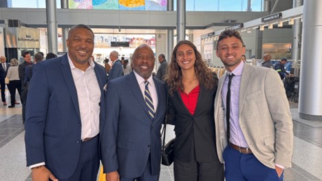 Left to Right: Dwight H. Pullen Jr. (AECOM SVP), Phil Washington (Denver International Airport CEO), Emily Luster (Luster Owner/President) and John Luster (Luster Owner/Vice President) during the Bay Area Signing Ceremony for the Equity in Infrastructure Project (EIP) at the BART Milpitas Transit Center. The EIP exists to improve public contracting practices by creating more opportunities for Historically Underutilized Businesses (HUBs) to build generational wealth and reduce the racial wealth gap by creating more prime, joint venture and equity contracting opportunities for these firms.
